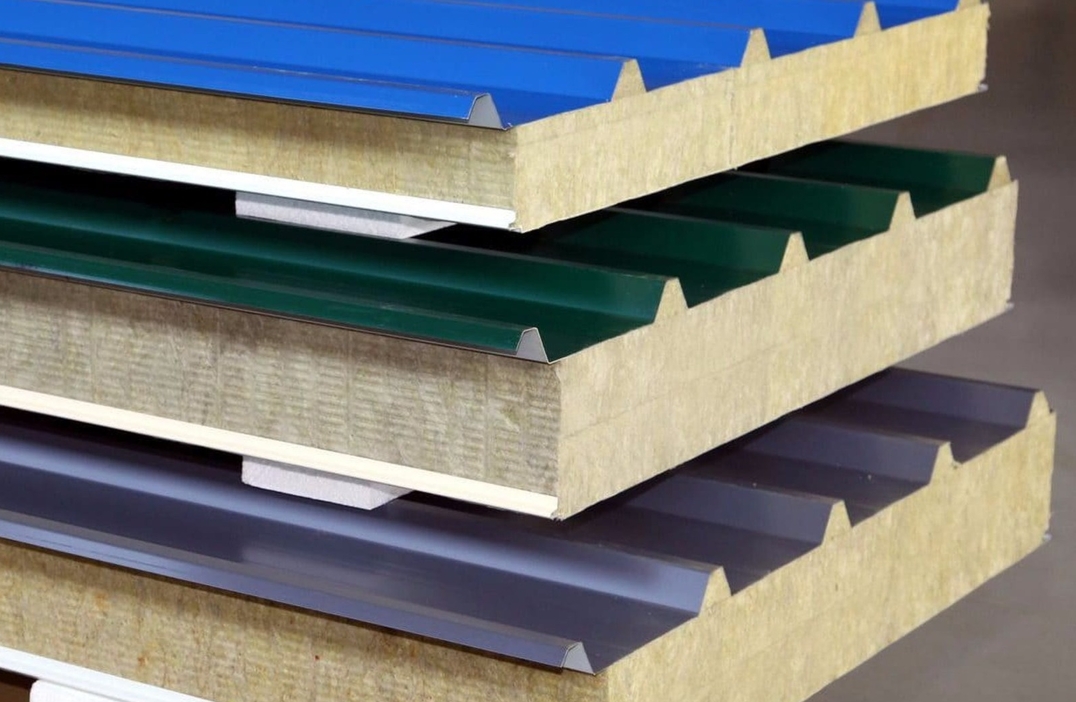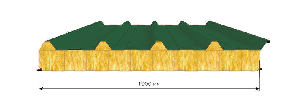Кровельные сэндвич-панели представляют собой подготовленные под дальнейшую эксплуатацию сборные трехслойные конструкции, состоящие из верхнего профильного металлолиста с высотой гофры от 30 до 40 мм, внутреннего слоя утеплителя из базальтовой ваты плотностью от 90 до 145 кг/м3 и нижнего гнуто-листового металла с мелкой волной. Панель имеет завершенную геометрическую форму и не требует внешней и внутренней отделки, сразу с конвейера готова к монтированию.