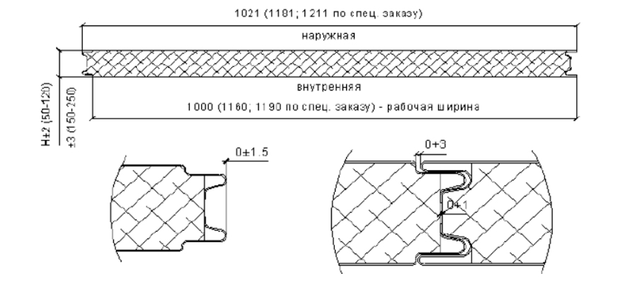 Ширина панели: 1000 мм, 1160мм, 1190мм